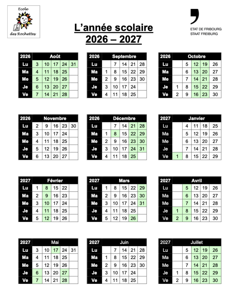 Voici le calendrier scolaire pour l’année scolaire 2025-2026.
