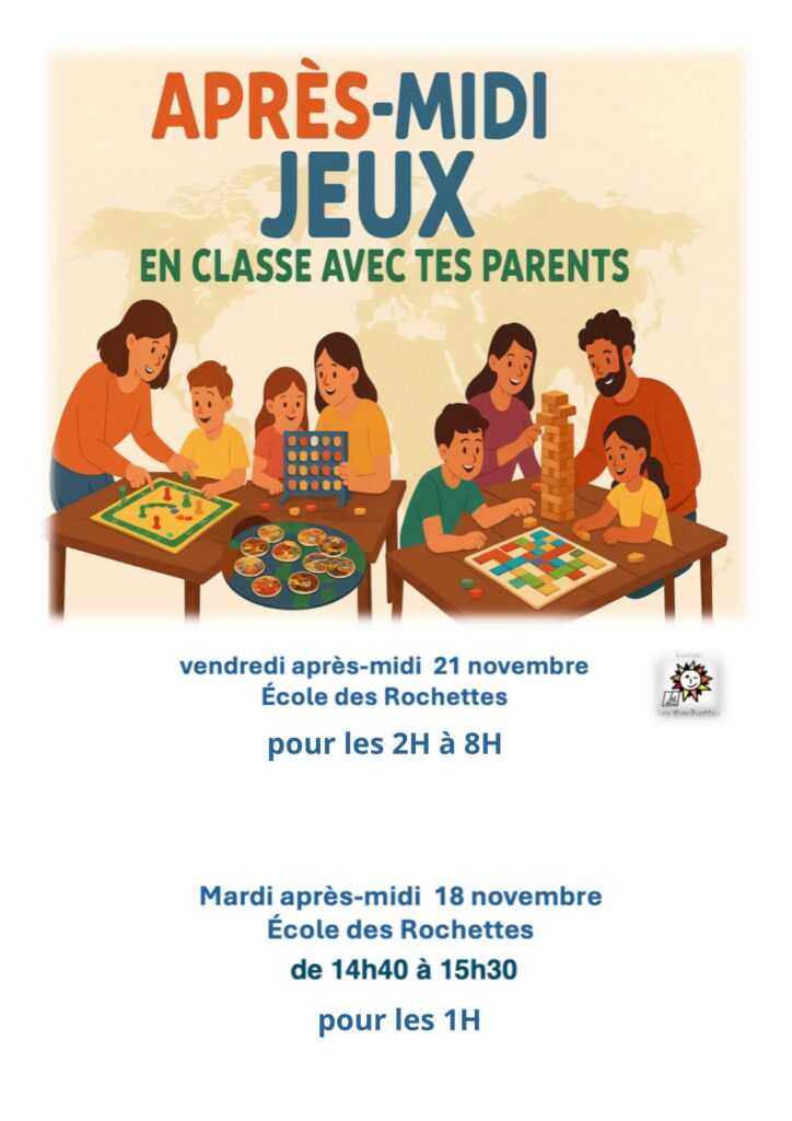 Nous invitons tous les parents à venir partager un après-midi en classe autour de jeux de société !